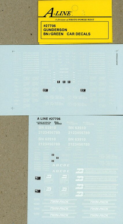 These decal sets are made exclusively for A-LINE by Microscale. Each decal set will do one five unit car.